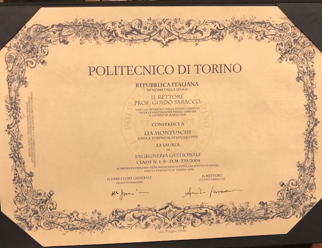 On March 20, 2018 I graduated in Management Engineering at Politecnico di Torino with 108 points out of 110